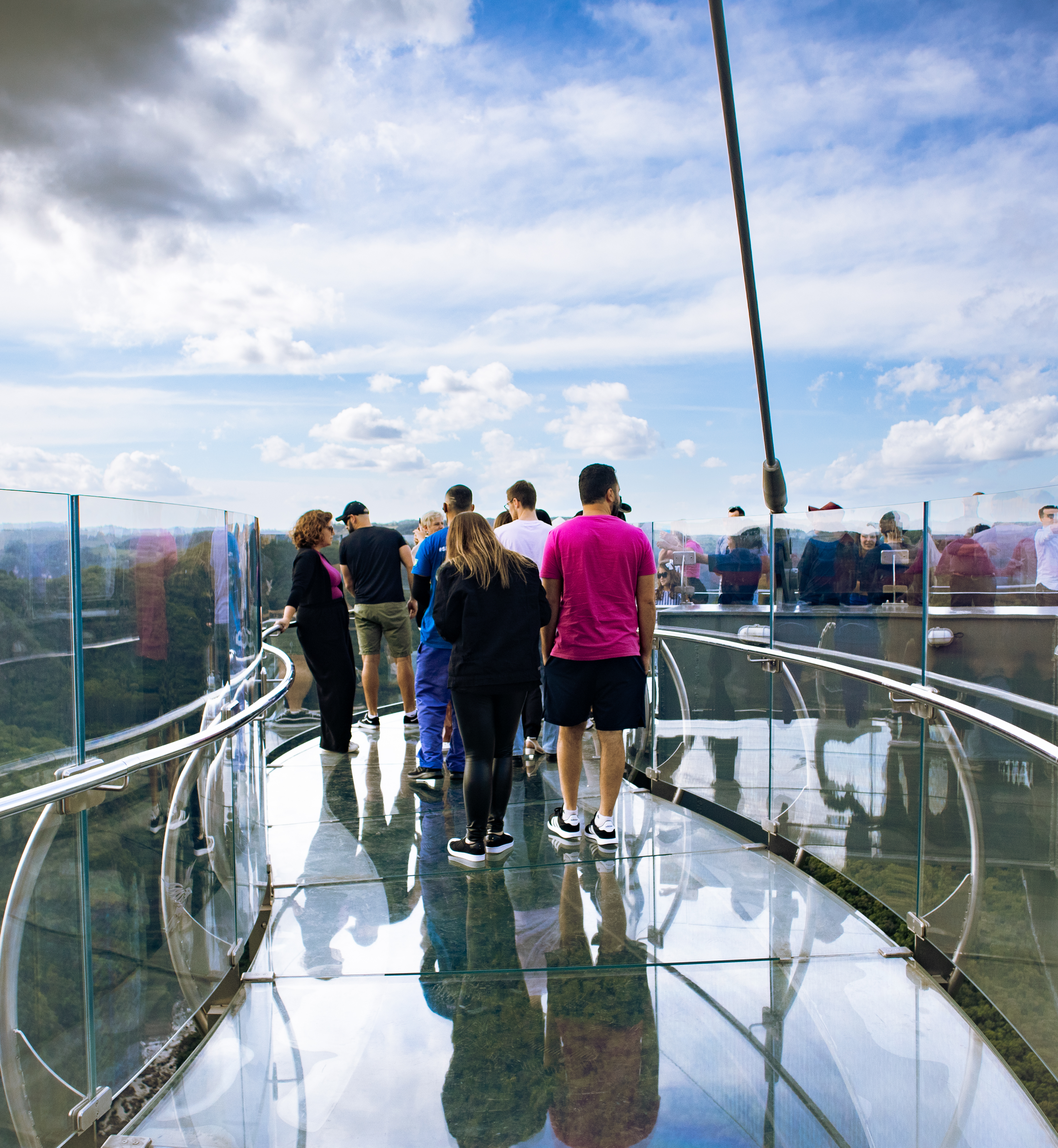 O INGRESSO DÁ DIREITO: - Entrada no parque; - Experiência de caminhar sobre o vidro da Plataforma; - Visita ao Memorial do Ferro de Passar; - Acessar as áreas internas do parque: lojas, praça de alimentação, playground e Deck do Pôr do Sol.